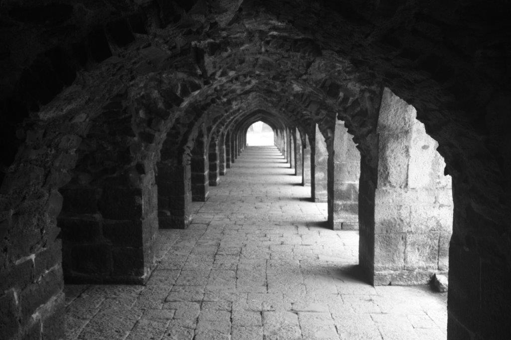 arches echo ahead, stretching to the end of time left into the labyrinth, right to the blinding sun it's a land of stark contrasts on one side, great adventure but great peril on the other, painful monotony of well-lit spaces then there's straight ahead: a ceaseless repetition of today throughout all your tomorrows