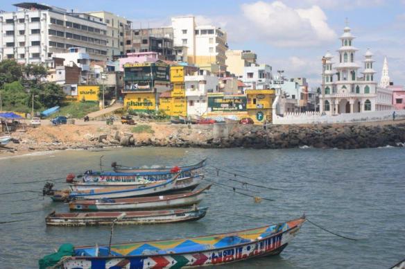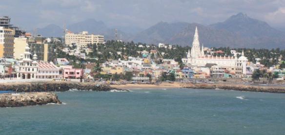 That brings us to December, which was the first and only time this year (since returning from Doha) that we traveled outside of the state of Karnataka. We toured southern Tamil Nadu. The trip started with a sleeper bus down to the tip of India. [The tip of peninsular India. The point in India that is furthest south is on an island in the Nicobar archipelago, but Kanyakumari — where we visited — is a town where the landlocked piece extends furthest south.] We then took a car from Kanyakumari to Rameshwaram, a pilgrimage town located out on an island that juts toward Sri Lanka, passing huge wind farms and salt “fields.” (The latter look a bit like unplanted rice paddies.) From Rameshwaram, we rode over to Madurai before catching a bus back to Bangalore.