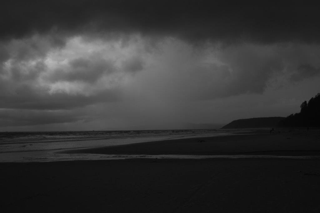 a typhoon stalled offshore, and dreary clings to this place a miasma written in solid hours when will clouds crack & let the light in? just one blue bolt of sky, showing through a crevice? my head is in fog, and I can't hear my pounding heart over the crashing of waves
