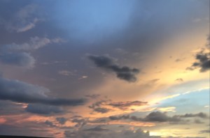 Looking out the car's rear window, I saw a strange and alien sky, and wondered where I was, and whether I was still somewhere that I would - elsewise - recognize, and - if not - whether I could get back, and whether I would want to go back. I saw a strange and alien sky, and did not look to see the ground.
