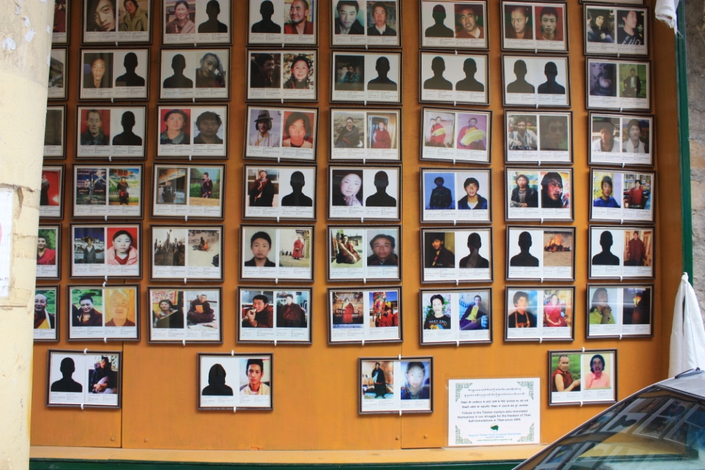 In the Dalai Lama Temple complex, Tsug la Khang, there’s a monument to Tibetan self-immolators that is located right across from The Tibet Museum (which, incidentally, has its own memorial wall inside.)
