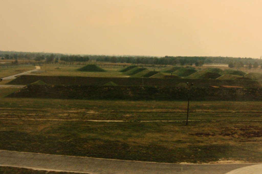 Anyway, it was a source of great hilarity / headache that the local anti-nuclear groups refused to believe nuclear weapons were no longer present. They would occasionally try to break in to show that security was inadequate for (the non-existent) nuclear weapons. Occasionally, they would succeed–because there weren’t nuclear weapons and so one airman–often on foot–provided security for the whole area, and nothing was line of sight because of the ubiquitous berms. It would take either a long time or a lot of noise to bust into one of the bunkers and one would probably gain access to nothing more than small arms ammo or bomblets for A-10s. So the security risk was not particularly great (compared to tactical nuke storage.)